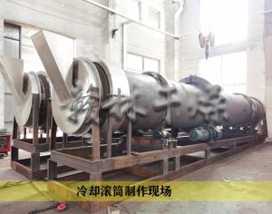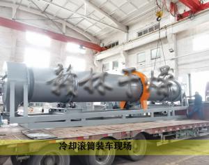 物料通過高度煅燒后進(jìn)入回轉(zhuǎn)滾筒內(nèi)部。冷卻水通過循環(huán)水泵進(jìn)入滾筒外夾套,熱的物料在滾筒筒體內(nèi)壁不斷地交換接觸面,從而實(shí)現(xiàn)冷卻